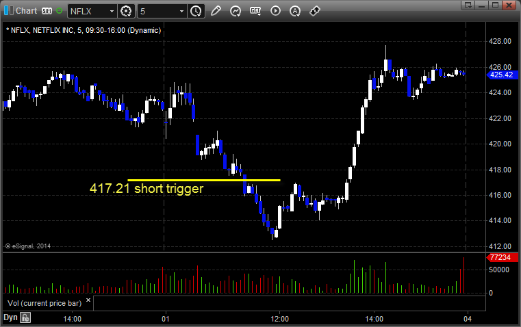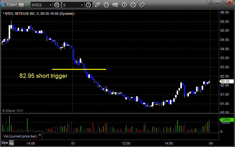 From the Messenger/Tradesight_st Twitter Feed, NTES triggered short (without market support) and worked great: