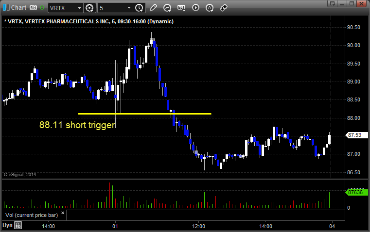 VRTX triggered short (without market support due to opening 5 minutes) and didn’t work, triggered later clean with market support and did work: