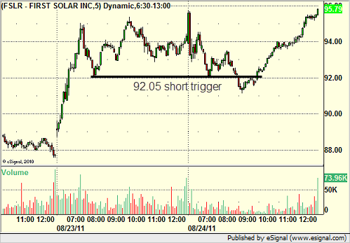 FSLR triggered short (with market support) and worked: