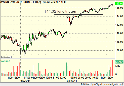 With each stock’s recap, we will include a (with market support) or (without market support) tag, designating whether the trade triggered with or without market directional support at the time. Anything in the first five minutes will be considered WITHOUT market support because market direction cannot be determined that early.