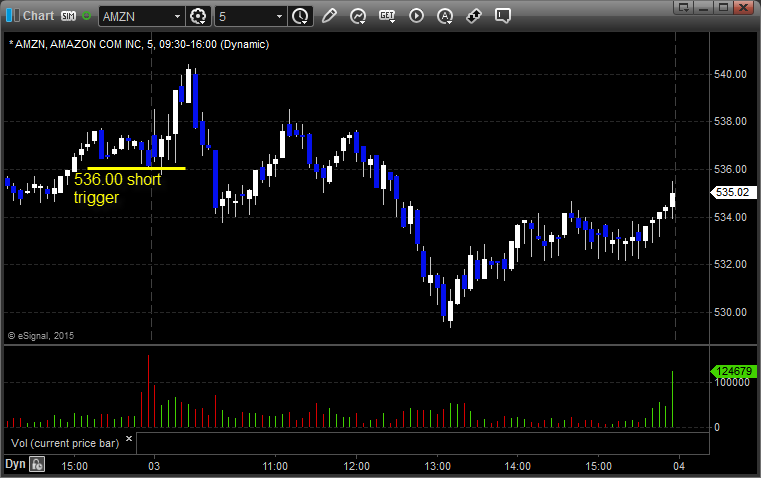 From the Messenger/Tradesight_st Twitter Feed, AMZN triggered short (with market support) and didn’t work, worked later: