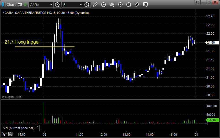 With each stock’s recap, we will include a (with market support) or (without market support) tag, designating whether the trade triggered with or without market directional support at the time. Anything in the first five minutes will be considered WITHOUT market support because market direction cannot be determined that early. ETF calls do not require market support, and are thus either winners or losers.