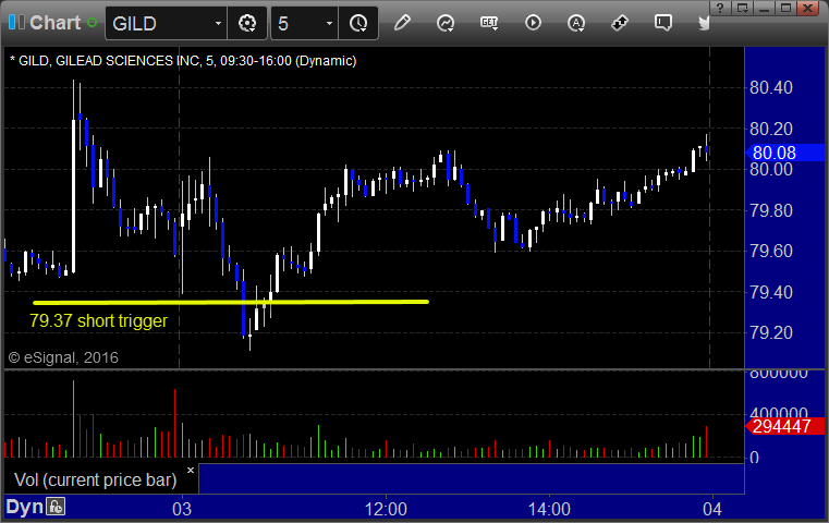 GILD triggered short (without market support) and worked enough for a partial: