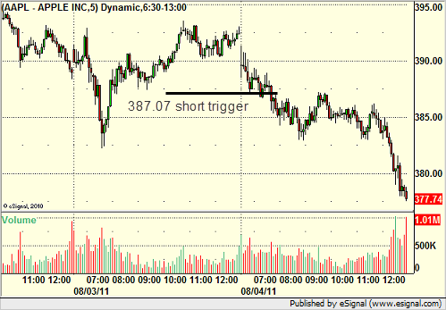 AAPL triggered short (with market support) but didn’t work initially, worked on a second attempt that we took, but we only count the first officially:
