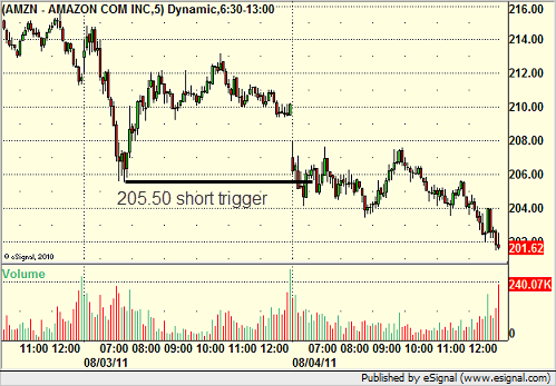 His AMZN triggered short (with market support) and worked: