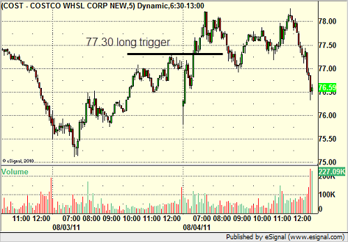 COST triggered long (without market support, although in a brief period where the market looked to be heading up) and worked: