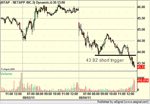 From the report, NTAP triggered short (with market support) and worked:
