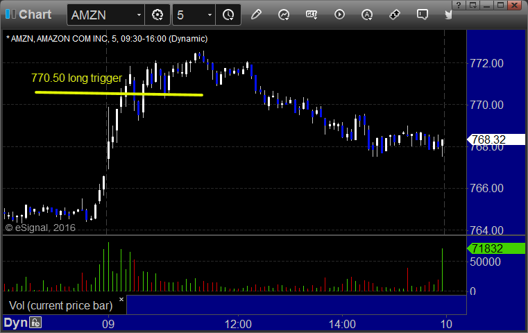 His AMZN triggered long (with market support) and worked enough for a partial: