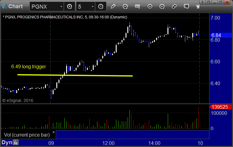 From the report, PGNX triggered long (with market support) and worked: