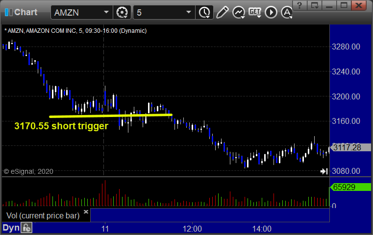 From the Messenger/Tradesight_st Twitter Feed, Rich’s AMZN triggered short (with market support) and worked: