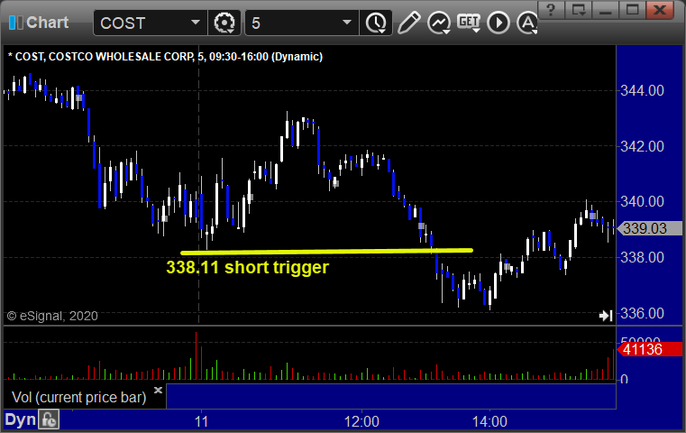 With each stock’s recap, we will include a (with market support) or (without market support) tag, designating whether the trade triggered with or without market directional support at the time. Anything in the first five minutes will be considered WITHOUT market support because market direction cannot be determined that early. ETF calls do not require market support, and are thus either winners or losers.