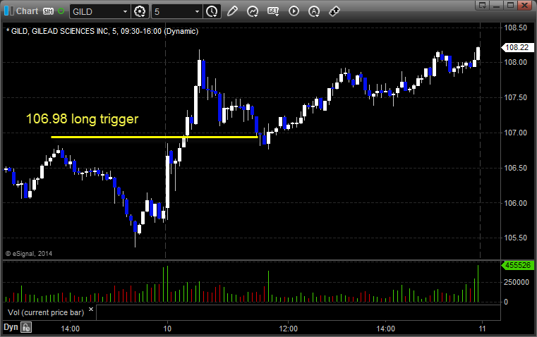 With each stock’s recap, we will include a (with market support) or (without market support) tag, designating whether the trade triggered with or without market directional support at the time. Anything in the first five minutes will be considered WITHOUT market support because market direction cannot be determined that early. ETF calls do not require market support, and are thus either winners or losers.