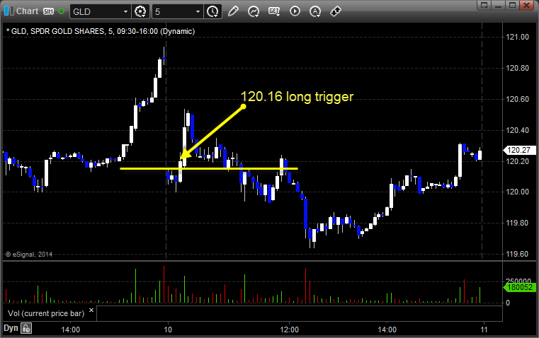 His GLD triggered long (ETF, so no market support needed) and worked enough for a partial: