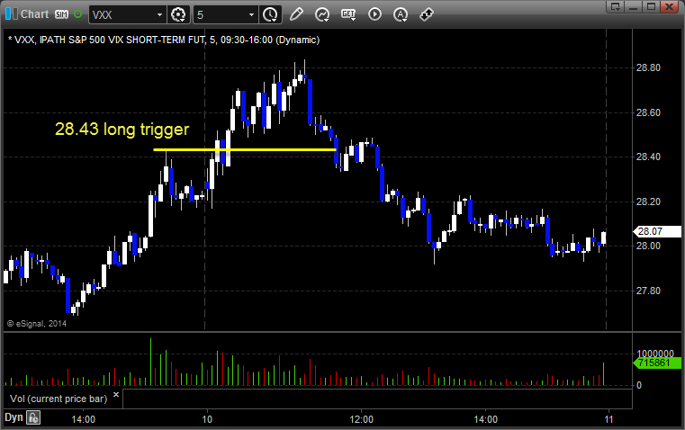 His VXX triggered long (ETF, so no market support needed) and worked: