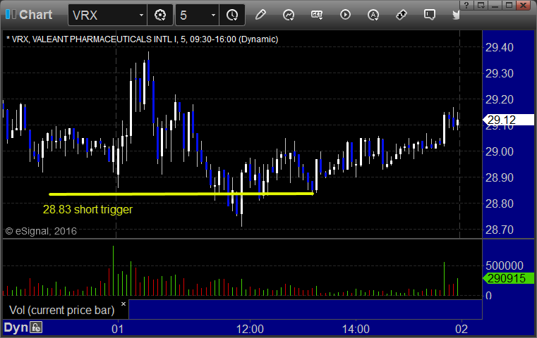From the Messenger/Tradesight_st Twitter Feed, VRX triggered short (with market support) and didn’t work: