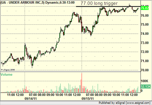 With each stock’s recap, we will include a (with market support) or (without market support) tag, designating whether the trade triggered with or without market directional support at the time. Anything in the first five minutes will be considered WITHOUT market support because market direction cannot be determined that early.