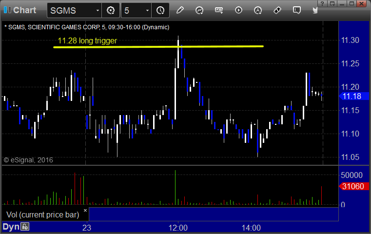 With each stock’s recap, we will include a (with market support) or (without market support) tag, designating whether the trade triggered with or without market directional support at the time. Anything in the first five minutes will be considered WITHOUT market support because market direction cannot be determined that early. ETF calls do not require market support, and are thus either winners or losers.