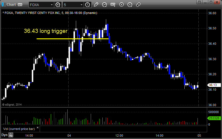 From the report, FOXA triggered long (with market support) and did nothing for quite a while, I closed it slightly in the money in the Twitter feed/Messenger, which ended up being a good thing:
