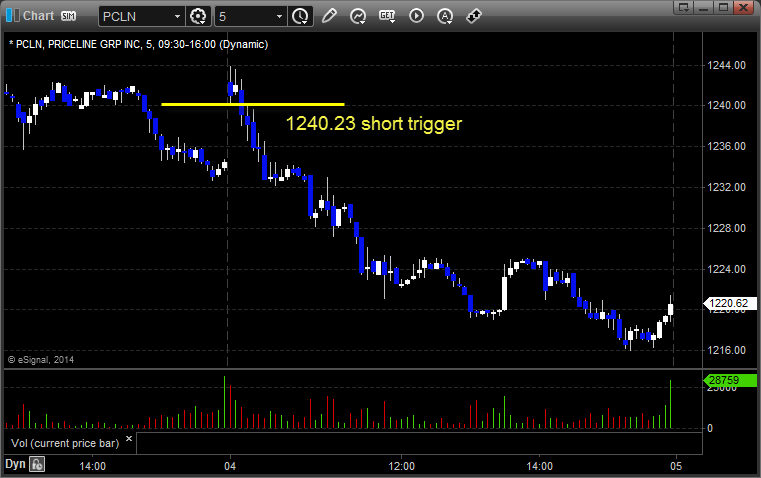 His PCLN triggered short (without market support) and worked great for over 20 points: