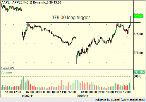 With each stock’s recap, we will include a (with market support) or (without market support) tag, designating whether the trade triggered with or without market directional support at the time. Anything in the first five minutes will be considered WITHOUT market support because market direction cannot be determined that early.