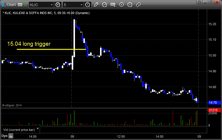 From the report, KLIC triggered long (with market support) and came within a penny of a partial, should have closed it when futures rolled, but without a note in the Twitter feed, we will count it as a loser: