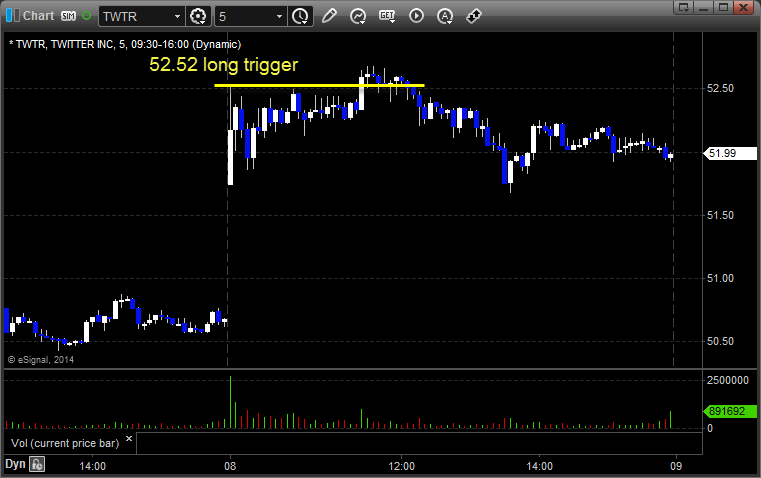 His TWTR triggered long (with market support) and didn’t work over lunch: