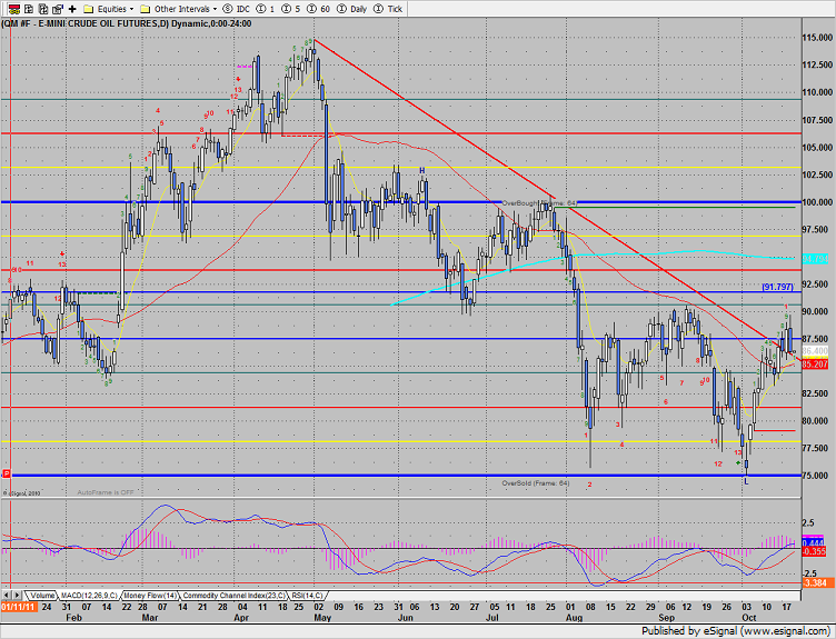 Oil was lower on the day but is still holding over the DTL. A failed break would be very bearish but the chart and is still positive with the MACD above the zero line.
