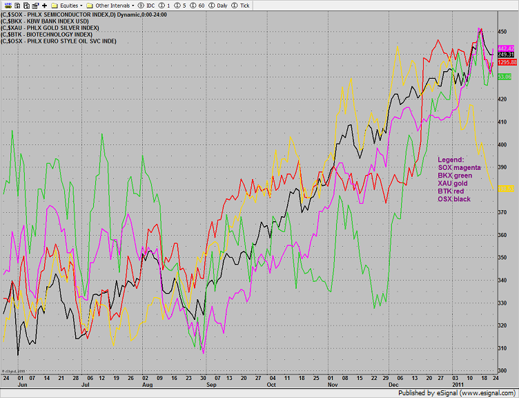 The BKX was the last laggard on the day. This lagging sector is vulnerable and has an active Seeker sell signal.