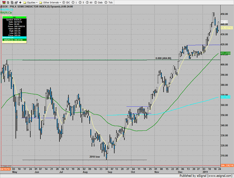 SOX was top gun on the day by a wide margin. One gap was filled today, leaving one still open at 450.