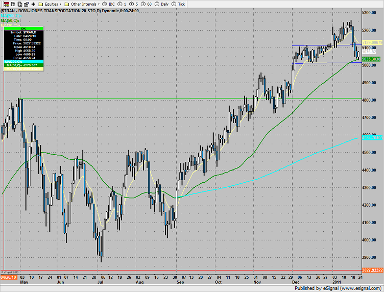 The Dow Transports tested and held the 50dma. Note the support at the 5k level.