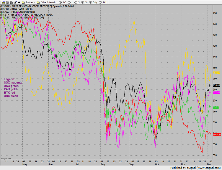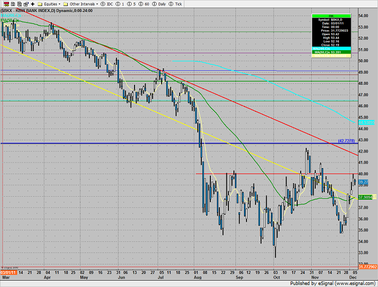 The BKX was much weaker than the broad market but still managed to post an inside day. Keep in mind the resolution of an inside day usually packs more punch then a typical day.