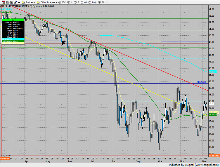 The BKX was up 1% and is just below prior resistance at the 40 level.