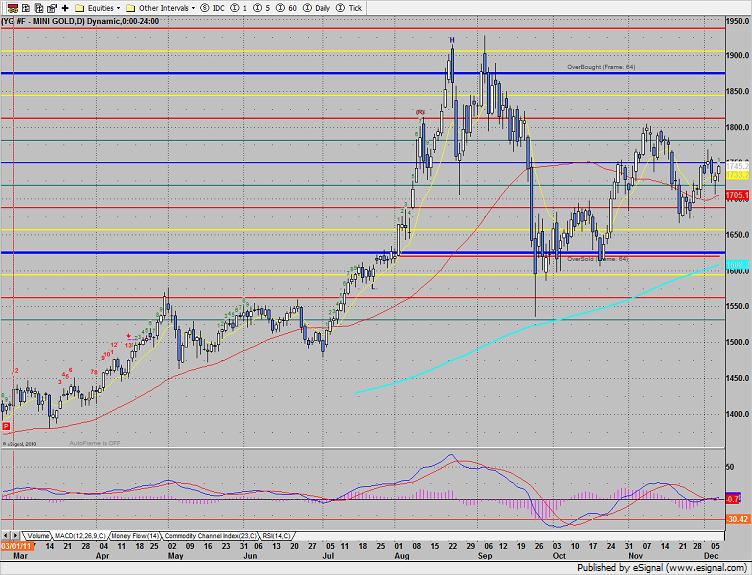 Gold was higher by 14 on the day.