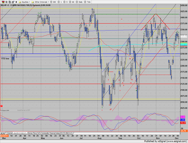 The NQ futures were not as strong as the financially influenced ES. Price was unchanged on the day and the close was below the intraday high of the move.
