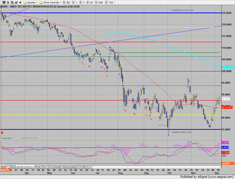 The broker-dealer index was the top gun on the day and is now 8 days up.