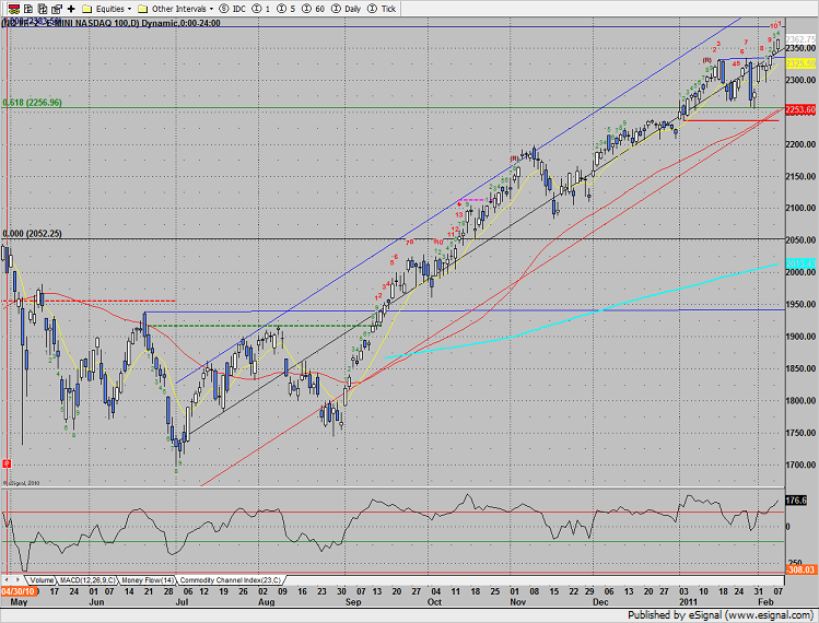 Naz was higher by 17, topping yesterday’s high and closing above it. The pattern is now 11 days up.