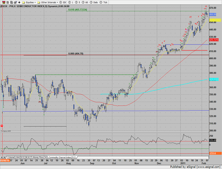 The SOX was lower on the day, underperforming Naz. Note that the Seeker 13 exhaustion signal is still on deck but has not been recorded.