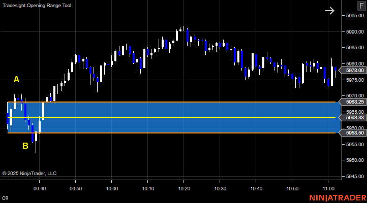 ES Opening Range Play, triggered long at A but too far out of range to take. Triggered short at B but too far out of range to take: