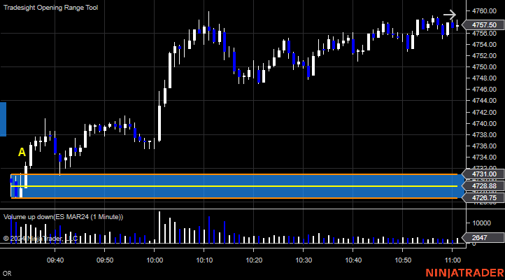 ES Opening Range Play, triggered long at A and worked: