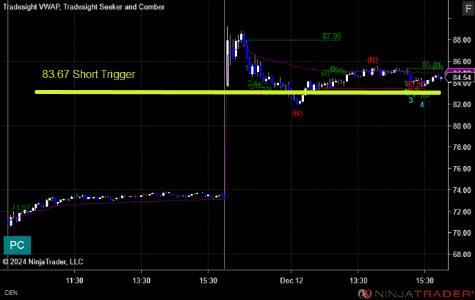 These are the Tradesight calls that triggered, Rich’s CIEN triggered short (without market support) and worked: