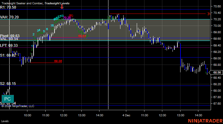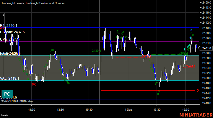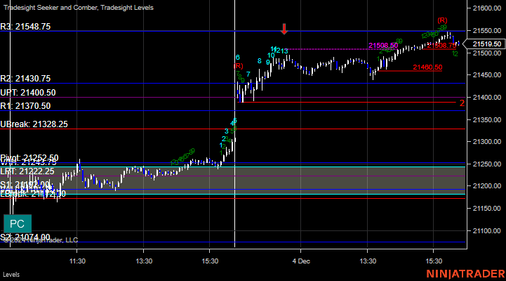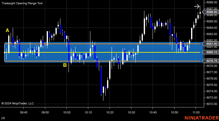 ES Opening Range Play, triggered long at A and worked enough for a partial. Triggered short at B and stopped above OR high:
