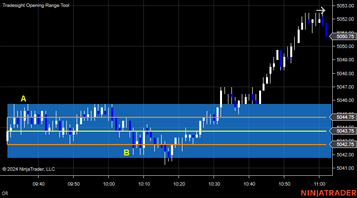 ES Opening Range Play, triggered long at A and stopped. Triggered short at B and stopped: