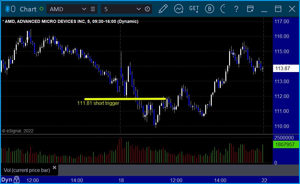 From the Tradesight Plus Twitter feed, Rich’s AMD triggered short (with market support) and worked: