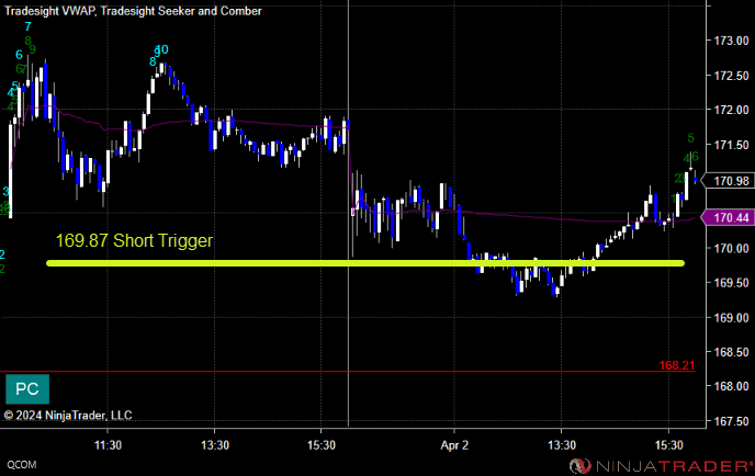 These are the Tradesight calls that triggered, QCOM triggered short (with market support) and didn’t work: