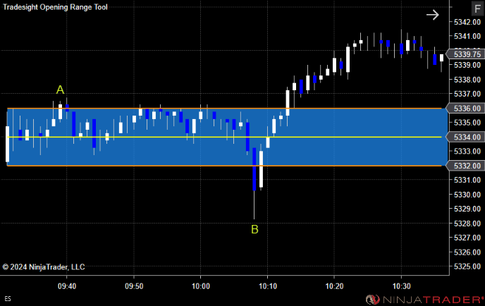 ES Opening Range Play, triggered long at A and did not work, triggered short at B and did not work: