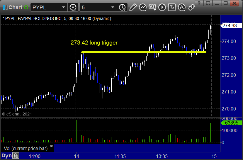 PYPL triggered long (without market support) and worked: