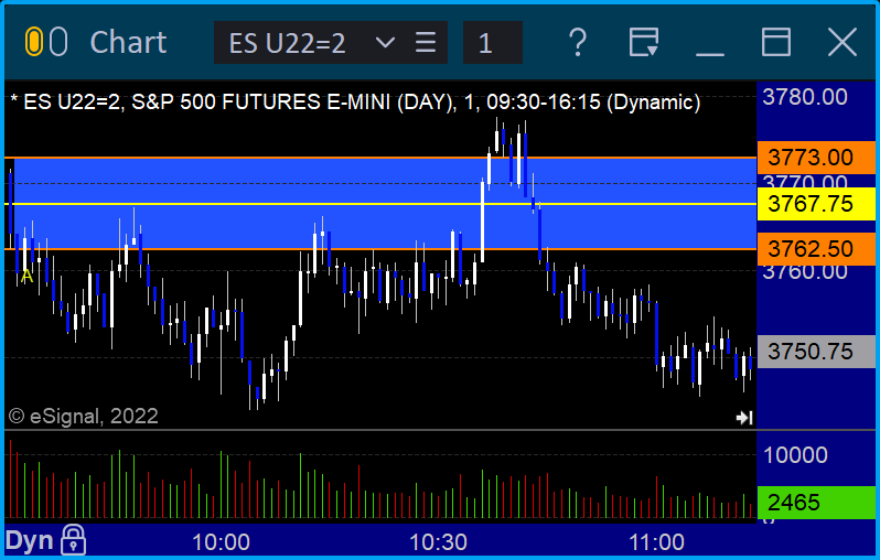 ES Opening Range Play triggered short at A but too far out of range to take: