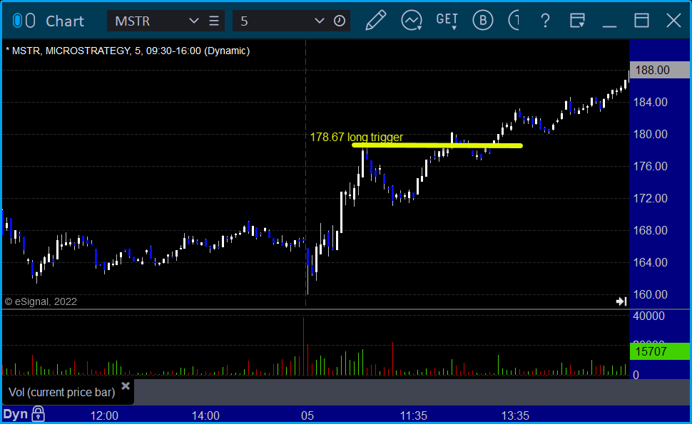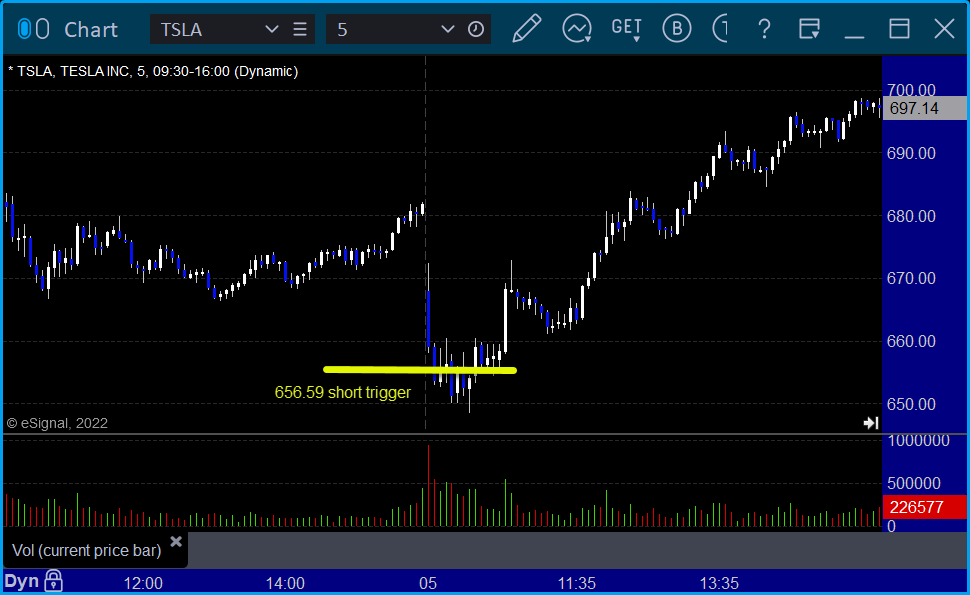 From the Tradesight Plus Twitter feed, Rich’s TSLA triggered short (with market support) and worked enough for a partial: