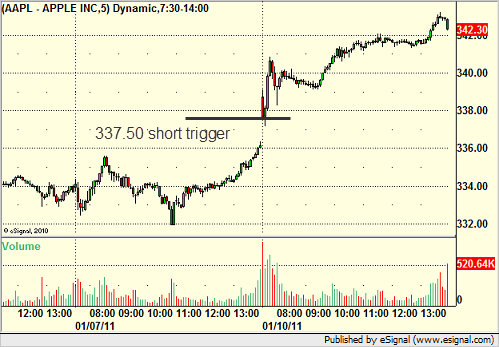 In the Messenger, Rich’s AAPL short triggered (without market support) and didn’t work:
