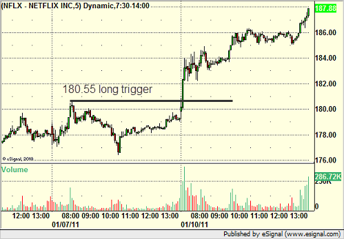 My NFLX long triggered (without market support due to the opening five minutes) and worked huge:
